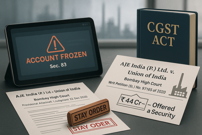 Section 83, read with section 67, of the Central Goods and Services Tax Act, 2017/Section 83, read with section 67, of the Maharashtra Goods and Services Tax Act, 2017 – Demands and recovery – Provisional attachment – Assessee was engaged in business of manufacture and supply of carbonated fruit drinks – Competent Authority vide order dated 18/19-11-2020 passed under section 83 provisionally attached bank accounts of assessee – In impugned order it was stated that proceedings initiated against assessee under section 67 were pending and investigation revealed that because of misclassification of products by assessee it had resulted in short payment of tax to tune of Rs. 33 crores during period from December, 2017 to February, 2020 – Whether because Competent Authority was conferred with power of provisional attachment under section 83 it would not ipso facto mean that he could straight away proceed to provisionally attach any property including bank accounts of a taxable person merely on ground of pendency of proceedings under section 67 – Held, yes – Whether as assessee had already offered to Competent Authority its land, building and plant and machinery having estimated gross value of Rs. 44 crores to secure interest of revenue, recourse to section 83 by Competent Authority straight away was not justified – Held, yes – Whether impugned order dated 18/19-11-2020 required to be stayed – Held, yes – Whether Competent Authority was to be directed to withdraw provisional attachment from bank accounts of assessee forthwith – Held, yes [Paras 27 and 28] [In favour of assessee]