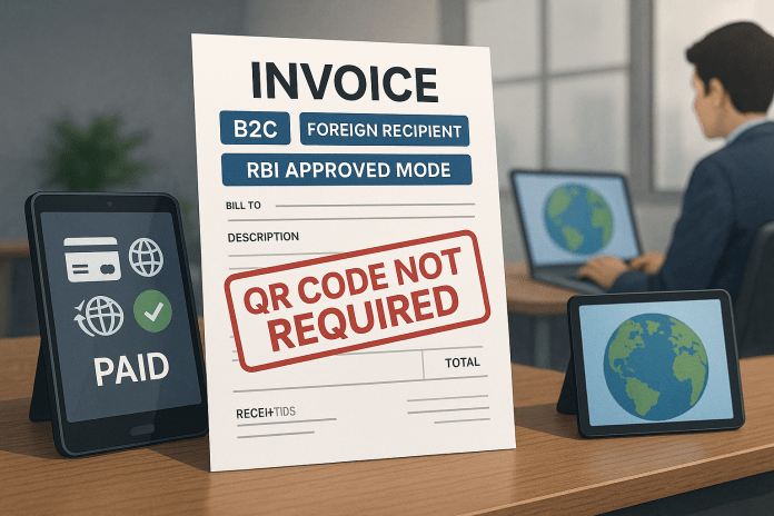 It clarifies that in such cases, even though the supply is not an export, the invoice need not include a Dynamic QR Code, provided the payment is received through: