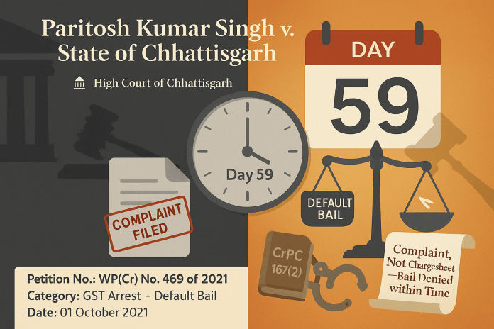 Issue: Bail – Entitlement to statutory/default bail under Section 167(2) CrPC in GST-related prosecution