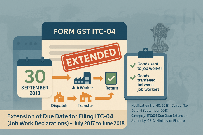 The Central Government, in exercise of powers under Section 168 of the CGST Act and Rule 45(3) of the CGST Rules, extended the due date for filing FORM GST ITC-04.