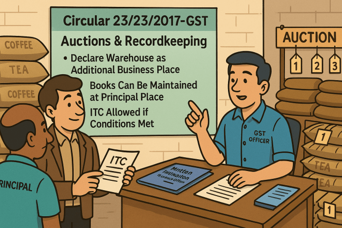 This circular provides clarification on maintenance of books of accounts by principals and auctioneers involved in the supply of goods like tea, coffee, rubber, etc., especially when auctions are conducted at additional places of business.