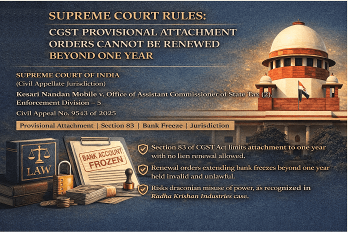 Section 83 of the CGST Act does not permit renewal or re-issuance of a provisional attachment order after it lapses by operation of law.