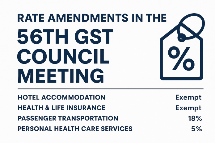 The 56th GST Council Meeting held in September 2025 marked a watershed moment in the trajectory of indirect tax reforms. The Council introduced sweeping changes in service tax rates, effective from 22nd September 2025, thereby redefining the contours of multiple service sectors including hospitality, transportation, insurance, and health care. These amendments are not mere numerical adjustments but bear significant legal, commercial, and compliance ramifications. In this article, we examine the statutory foundations of these changes, their transitional intricacies under Section 14 of the CGST Act, 2017, and their broader implications on businesses and consumers alike.