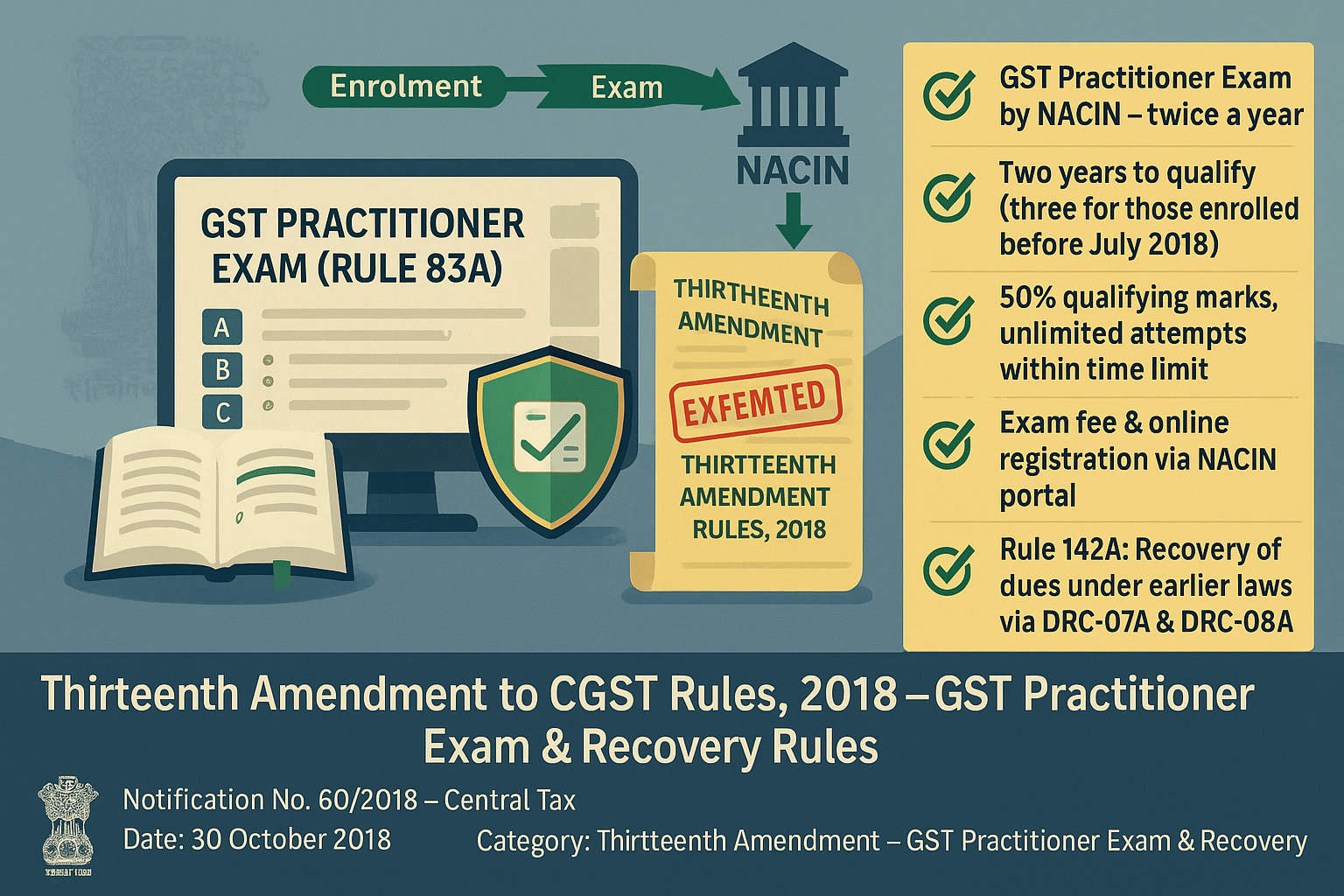 A new rule mandates GST Practitioners enrolled under Rule 83(2) to pass an exam conducted by NACIN. Key highlights: